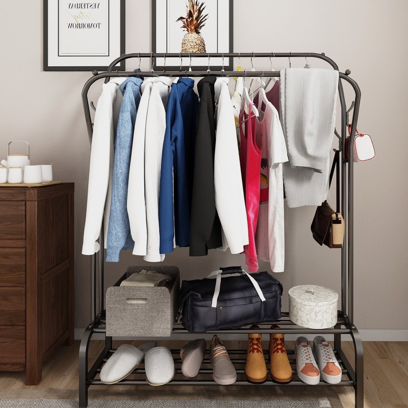 Adjustable, Double bottom shelves,Portable, Heavy Duty, 8 Hangers, 2 Shoe Shelves, Hanging, Large Capacity