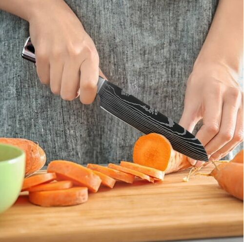 Tips: The blade is 7CR17 stainless steel, the surface of the laser Damascus pattern, very beautiful, good workmanship, razor sharp, keep your kitchen away from the blunt knife, and enjoy your kitchen life!