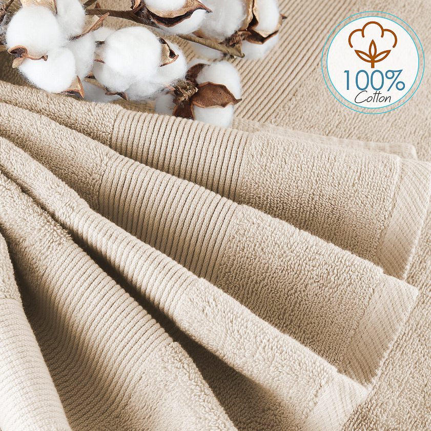 A Complete Set For Your Bathroom: This Bath Towel Set includes 4 Cotton Bath Towels and 2 Cotton Washcloths. The Bath Towels measure 27 x 54 inches, Washcloths 12 x 12 inches.