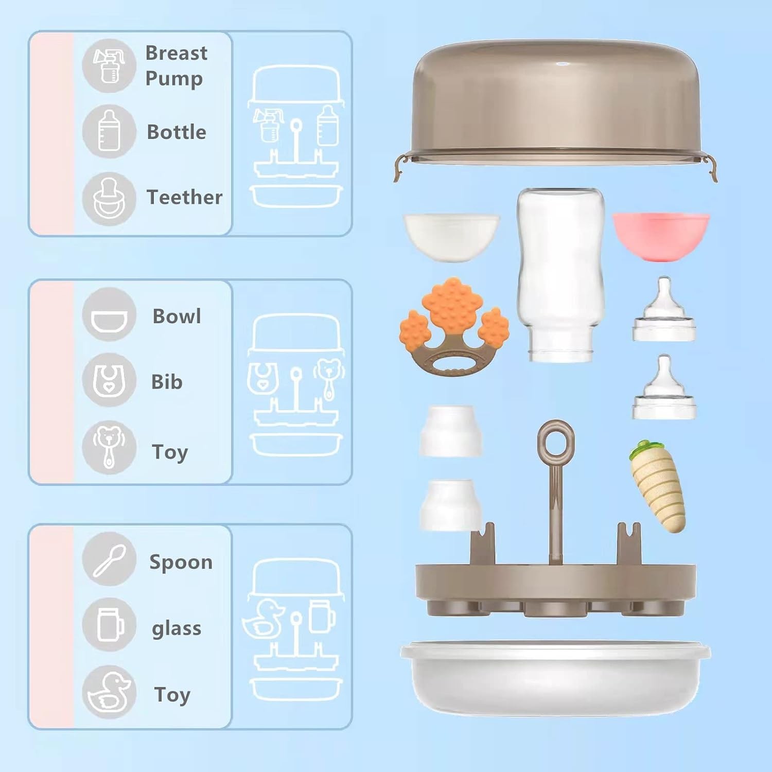 • ???? & ??????? ????????: The baby bottle sterilizer is made of pp food-grade high temperature resistant material, BPA free. Safety clips keep the lid securely closed and side grips stay cooler for safe handling