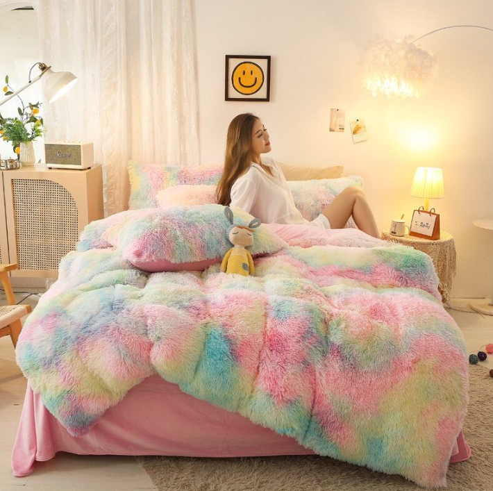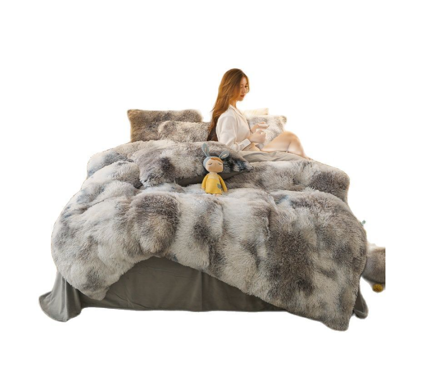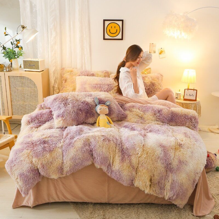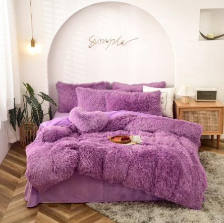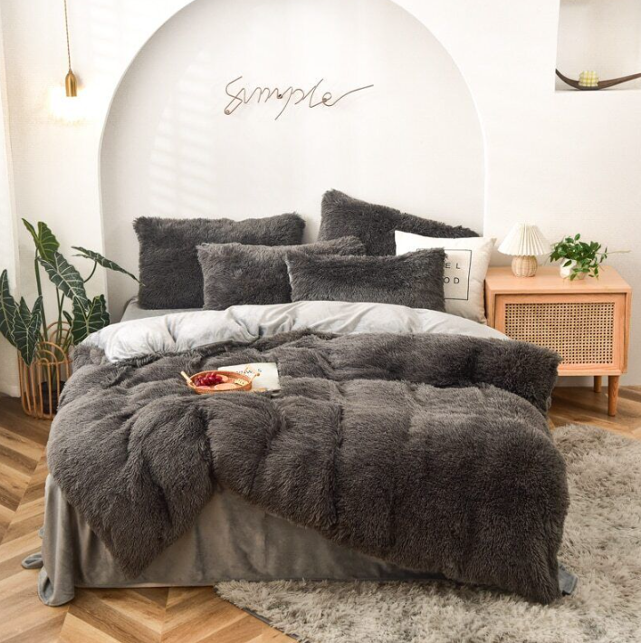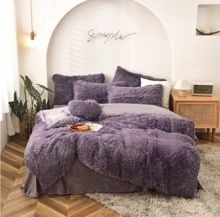 Duvet Cover Set Long Mink Hair Warm Bedding Linen 1/3/4/5pcs Queen Fannel Fleece Heart Cushion Pillowcase Dropship US FR
