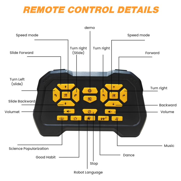 ?【Action Programming RC Robot】The programming feature is straight forward. Kids can enliven their play by using this to help the dancing robots navigate around a maze or perform a ‘dance’ routine. Worthy companion and fun RC robot for 3-10 year old boys and girls. There are 10+ buttons that can help them make the command and up to 50 actions can be programmable.