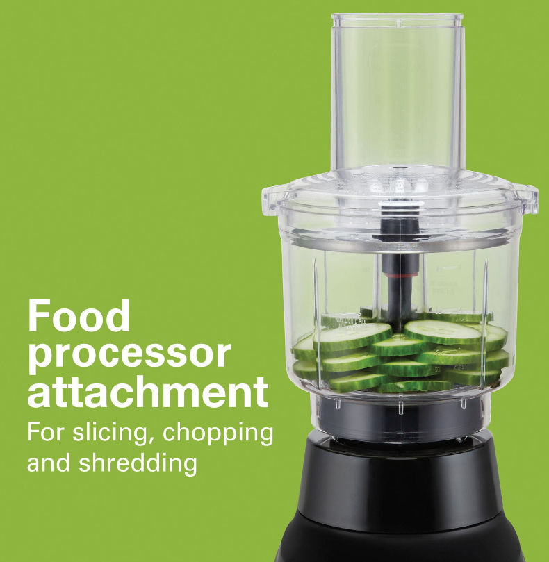 • FOOD PROCESSOR - BLENDER: The food processor attachment replaces your stand-alone food processor. In addition to chopping, it includes a blade for slicing and shredding. The 3-cup BPA-free processing bowl has a built-in chute and food pusher.
