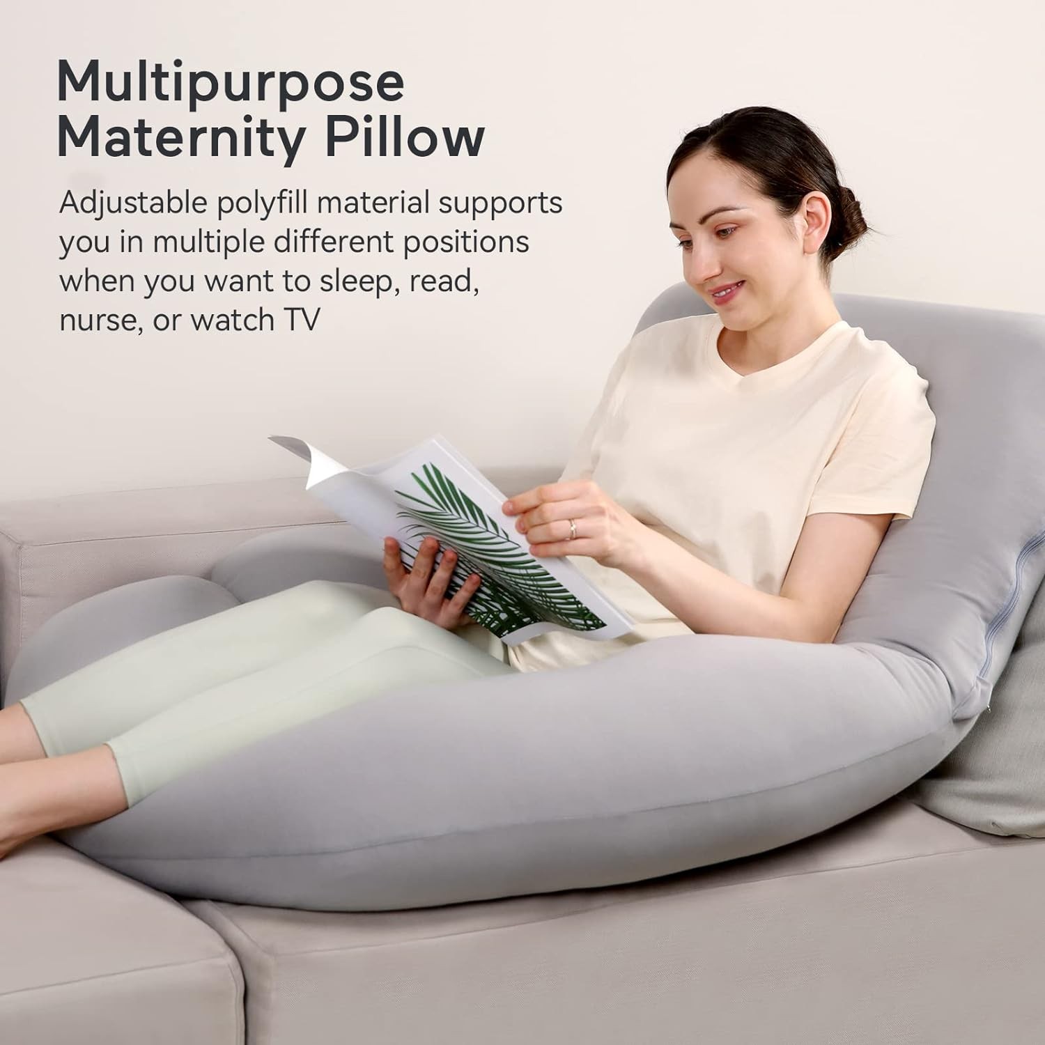 • Full Body Support Pillow - Ergonomic U shaped pregnancy pillow designed to replace the needs of multiple bed pillows, it hugs your entire body and conforms to both sides, perfectly support the head, back, belly, sides, knees, hip, and feet.