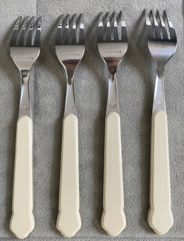 Add elegance to your dining table with this 20-piece flatware set from Pfaltzgraff. The set includes salad forks, teaspoons, dinner knives, place/oval soup spoons, and dinner forks, all made of high-quality stainless steel. The ivory-colored handles are adorned with a beautiful floral pattern, making it perfect for all occasions.