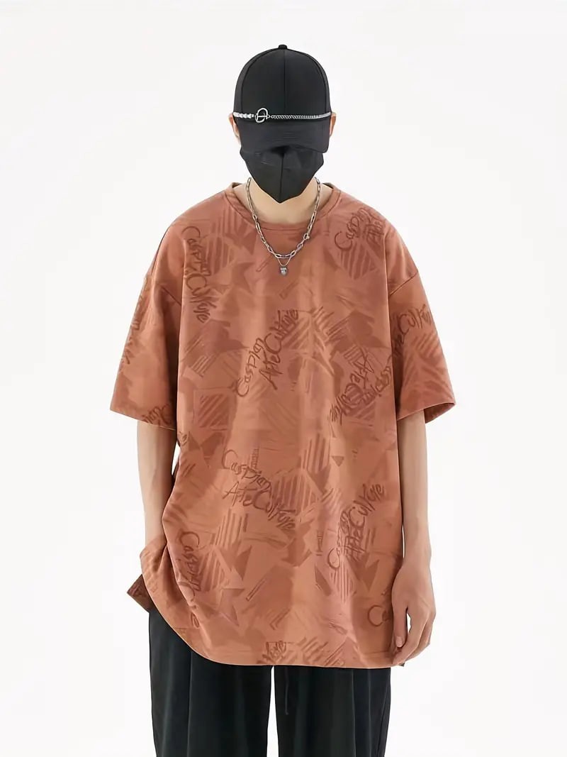 Plus Size Men's Casual Streetwear Tops Solid Textured Fashion Loose Drop Shoulder T-shirts