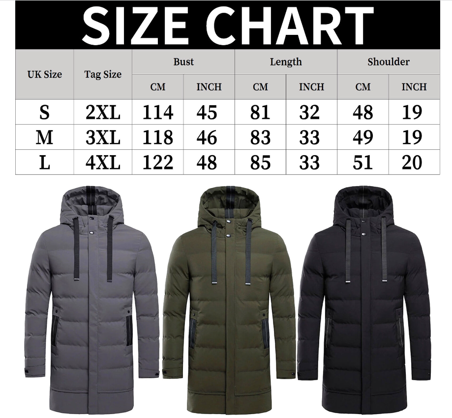 Winter Mens Long Puffer Coat Hooded Cotton Bubble Jacket Quilted Padded Overcoat